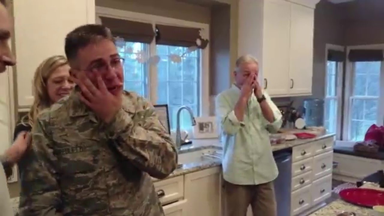 Mike Shufoletti also believed he would spend Christmas in the military, but managed to work out a deal to spend time at home nonetheless. He didn’t tell his family, because he wanted his visit to be a surprise.