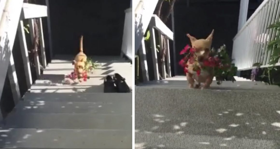 Loyal Dog Picks Up Flowers With Him Show Up To Mom’s Door Showing His Love
