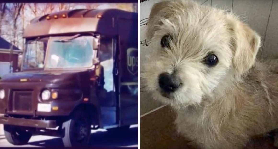 Delivery Driver Sees A Puppy Thrown Out Of A Car Gets Out From His Truck To Save The Pup