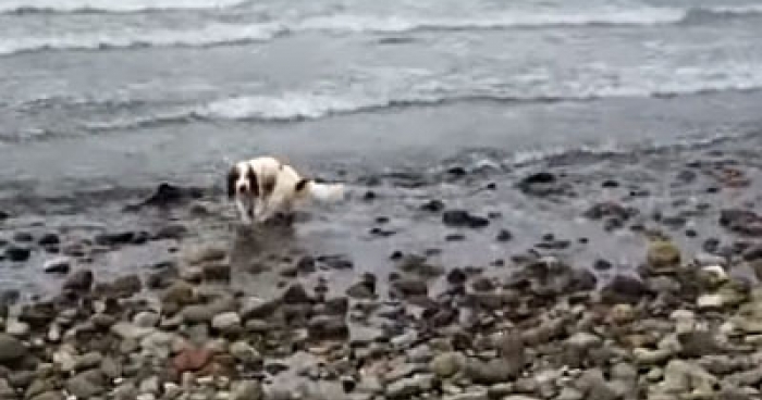 A man taking photos of the beautiful scenery of Krishith Beach was distracted when he heard his dog barking further down the beach.
