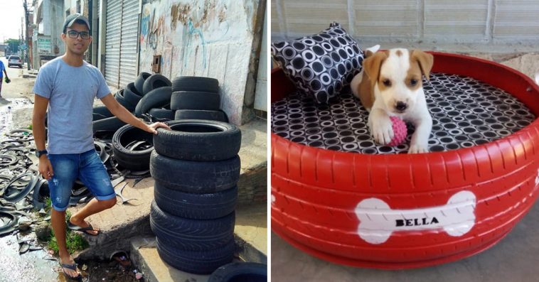 Whenever he has free time, Amarildo collects discarded tires and gives them new life by turning them into special animal beds. It has already sold more than 500 pieces so far.