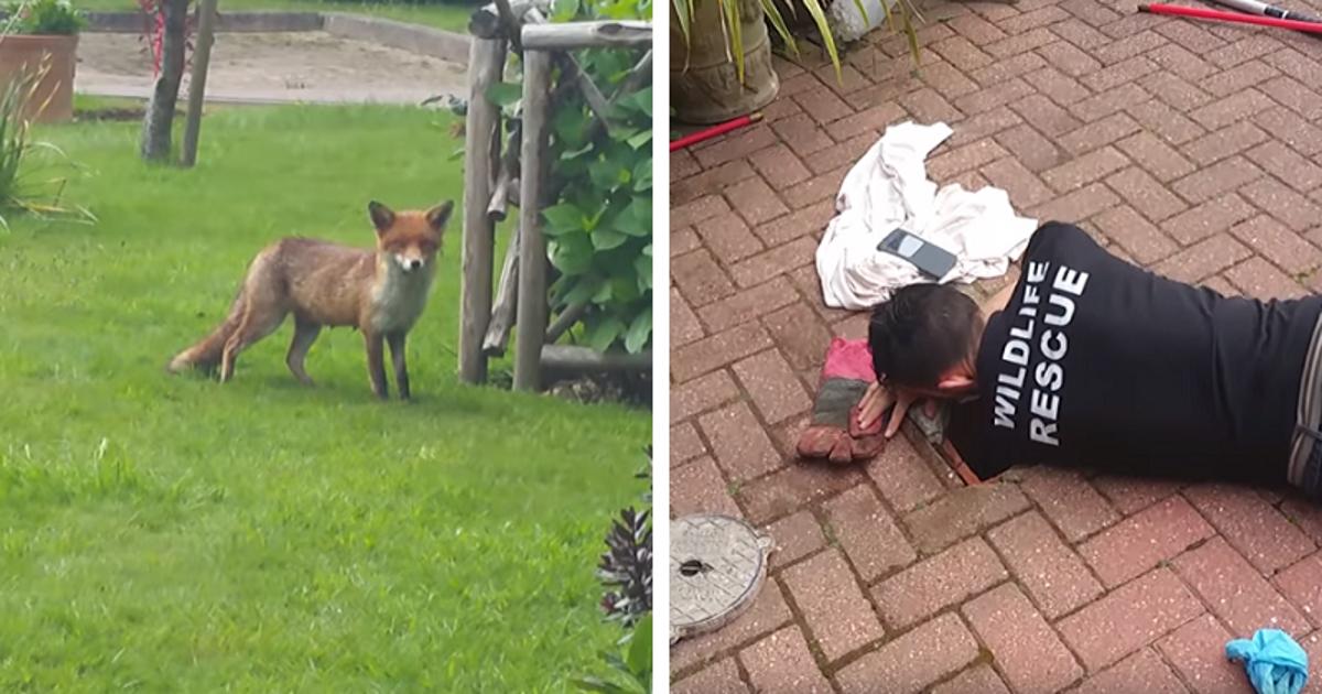 Try several times to control the fox. After several attempts, he managed to grab the cub’s tail and carefully pull him out of the drain.
