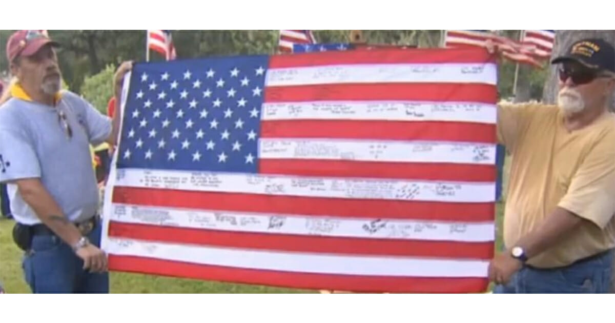 In Walter’s hands was an old flag covered in writing, so the couple began to read.