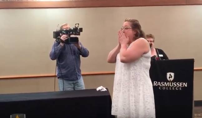 Unknown to her, her friends and co-workers had a major surprise in store. However, one colleague had a hard time trying to keep the good news to herself. Luckily, she did not reveal the surprise.