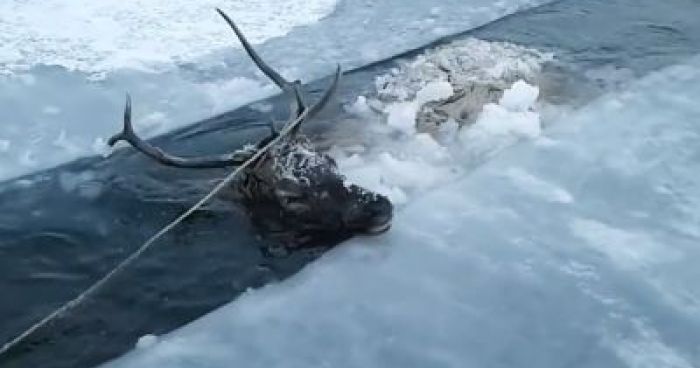 In the video, a red deer can be seen stuck in the frozen Barguzin River near Ulan-Ude in eastern Siberia, Russia. Four people had to join forces to cut the path of a deer and drag it out of the river in an effort that lasted more than four hours. When the deer was removed from the water, it was completely cool, so they quickly began to warm it up. First his fur was rubbed, then they warmed him with a fire. Because the fire didn’t help it, they led the deer to a hot garage where they fed it lard and vodka to warm it up inside. Finally, after recovering enough to move around freely, the locals released the deer, which returned to the forest. For their work, this large animal will surely be grateful to you! https://youtu.be/xAr7zL33ANo
