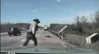 Moments after the video ended, a fourth man, identified by media as Eric Roda, ran ashore to help the trio. He told reporters the retired couple had been in the water for more than 10 minutes before reaching safety.