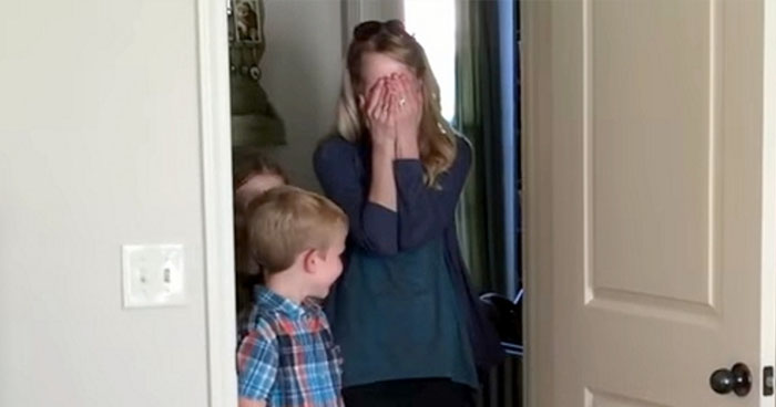 At the end of the video, Kate returns home to her surprise. She is literally shocked when she walks into her beautiful new bedroom.